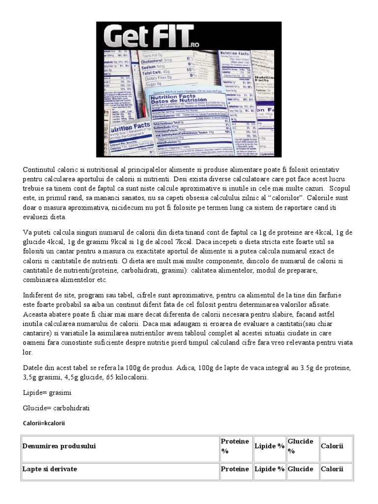 vizitati articolul complet aici : https://www.academia.edu/18928373/Estimarea_si_numararea_caloriilor Laptele de vaca contine fier, flor si zinc, dar si aproxomativ 50 de miligrame de sodiu in 100 de mililitri de lapte. Acesta contine de peste 10 ori mai mult calciu comparativ cu laptele de soia fara adaos de calciu. Laptele este un aliment cu relativ putine calorii.