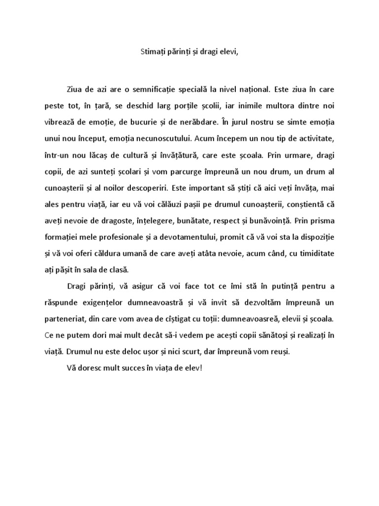 Stimaţi profesori, parinti, colegi, distinsi invitati…asa incepe un discurs standard cu aceasta ocazie.